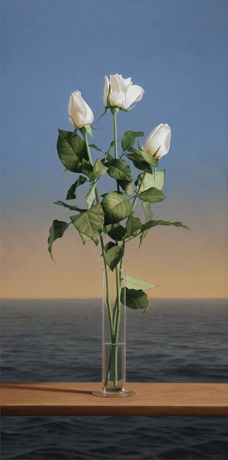 Antonio Cazorla González was born in Punta Umbria, Spain, in 1971. From an early age he showed an exceptional interest and aptitude for art. By the age of ten he had begun to master the techniques of oil painting and exhibited his work publicly for the first time aged eleven. In 1989, Cazorla began studying at the Faculty of Fine Arts in Seville. The experience of this city, a place rich in both art and history, was a decisive moment in his life and career. Cazorla’s exemplary record as a student earned him the Landscape Grant of El Paular (Madrid). He then went on to complete a doctorate course. During these years, Cazorla’s painting style developed considerably, evolving technically as well as becoming more mature. After finishing University, Cazorla spent nearly three years living in England. On his return to Spain, he received an award from The Academy of Sciences, Arts and Humanities in Huelva in recognition of his continued contribution to the arts. In his paintings, Cazorla utilises colour, tonality and form in order to reflect the calmness and sensitivity of his subjects. The aroma of fruits can be perceived, Cazorla’s dune scenes communicate nostalgic memories of the Spanish coastline where he grew up and his figurative paintings expertly capture the beauty and sensuality of the female form.