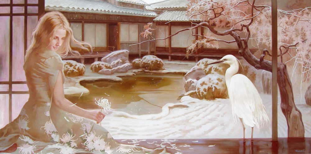 Russian painter, born in Moscow in 1966, Svetlana Valueva was accepted into art school at the tender age of six - an astonishing child prodigy. By the age of 8, she was winning international exhibitions and at age 11, was featured in a documetary on outstanding artists that was shown in theaters across Russia. By then, her father, a gifted artist himself, had given her his own studio. Also, she had been secretly shown the fantastical works of artists like Klimt, Alfons Mucha, Sargent, and Alma-Tadema, whose styles were quite forbidden in Soviet era Russia. However, this discovery was the springboard for Valueva's exquisite Art Nouveau-inspired vision. She began to attract scores of collectors and dealers who smuggled her work out to avid admirers around the world, until the Art Academy finally allowed her a summer trip to study in Europe. From there, Valueva easily gained international acclaim, and remains one of Russia's most outstanding artists.