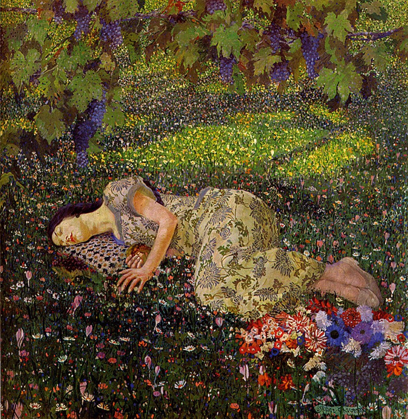 In the same year he exhibited for the first time at the Venice Biennale, admitted thanks to a portrait of his sister Elvira, Portrait of a lady. He returns again to the Biennale of 1909 and 1910; on this occasion he has the opportunity to observe the works of Gustav Klimt that will influence some of his later paintings by him, such as The dream of the pomegranate, presented at the First International Art Exhibition of the Secession in Rome in 1913.